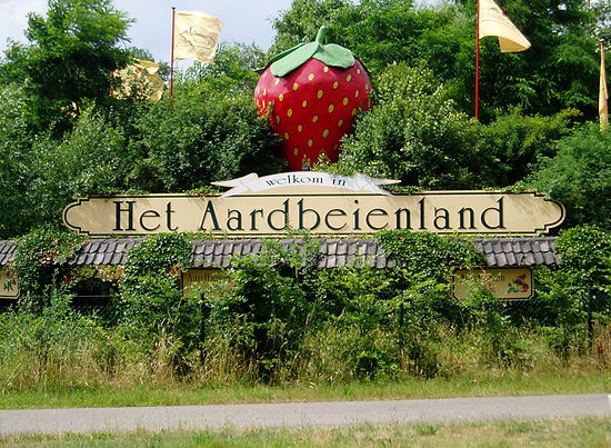 After departing an hour later than planned, the first 40 km of the trip went well, and we decided to have lunch. Between the three of us, we ate a whole bread. We continued cycling along a train track and a marshy area. The road was perfectly straight and about 6 km long. At the end was a village where we bought more bread for dinner and breakfast for the next day. Bram and I waited outside while Koen went to a bakery. Several girls came up to us to talk. They asked if we smoked and if we wanted to buy them cigarettes. Needless to say, we didn't. When Koen left the store, the girls harassed him, but fortunately, he restrained himself. We continued cycling and, after 60 km, arrived at the "Strawberry Land" amusement park.